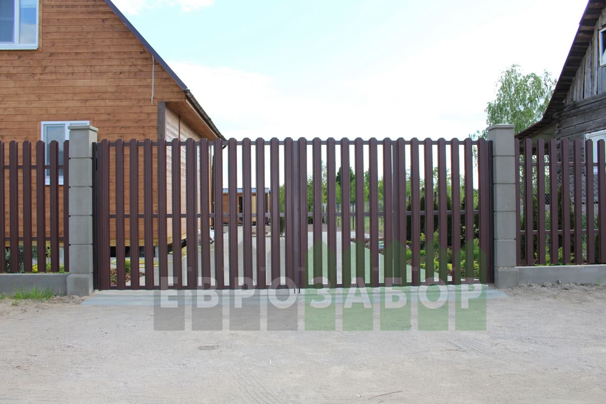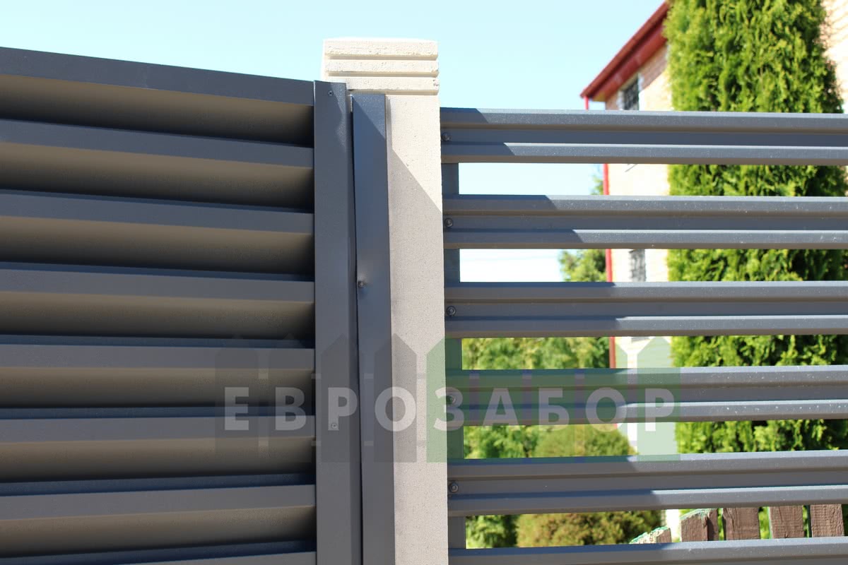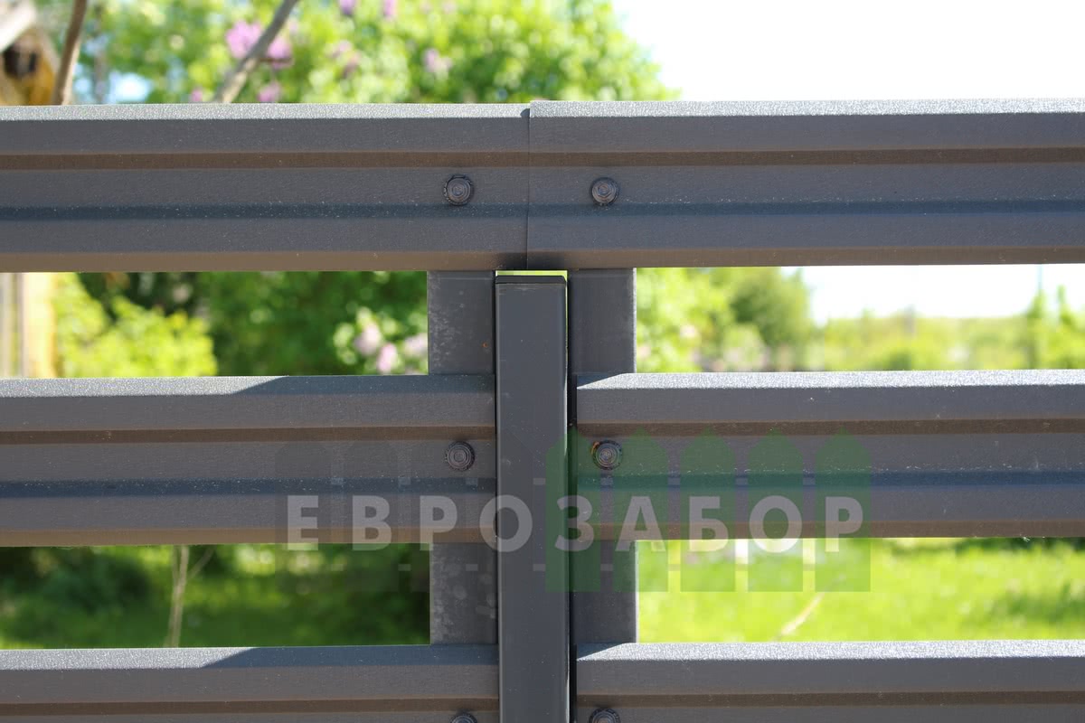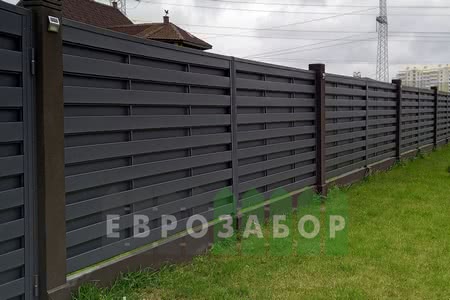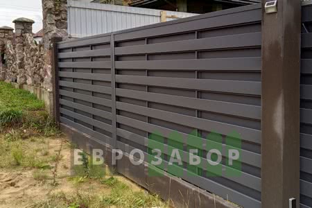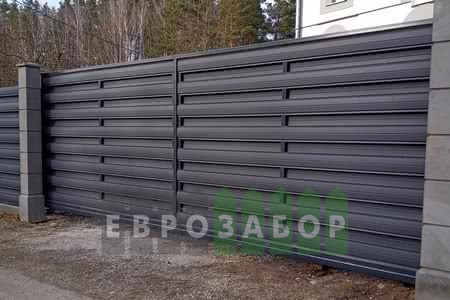 Секции выполнены из оцинкованных штакетин с полимерным покрытием.. В последнее время пользуются большой популярностью на нашем рынке за счет доступной цены.