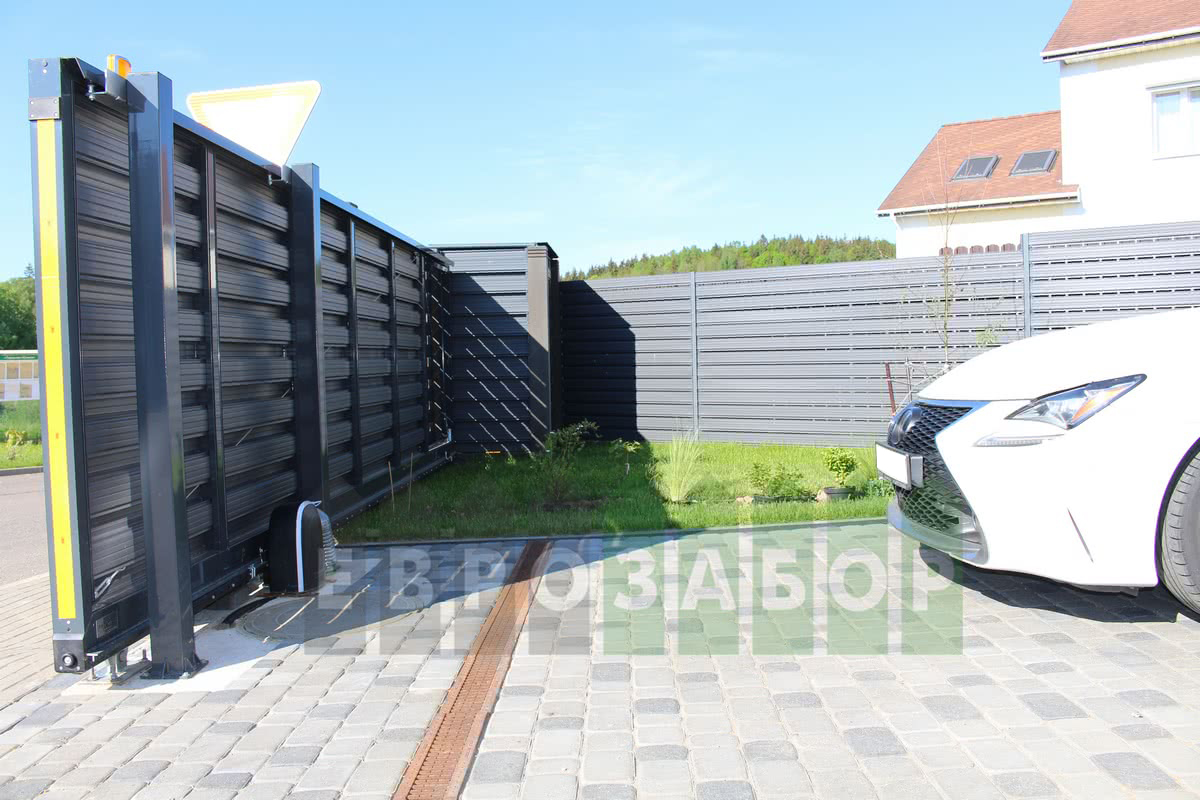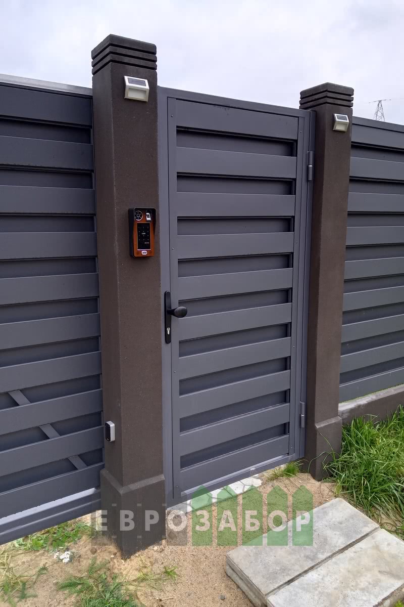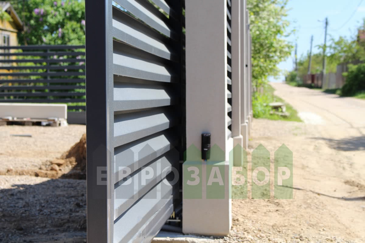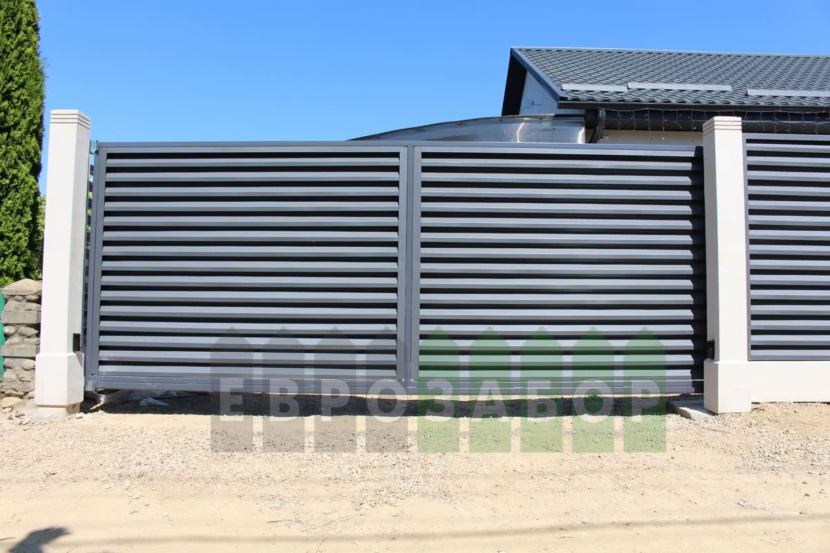 Секции выполнены из оцинкованных штакетин с полимерным покрытием.. В последнее время пользуются большой популярностью на нашем рынке за счет доступной цены.